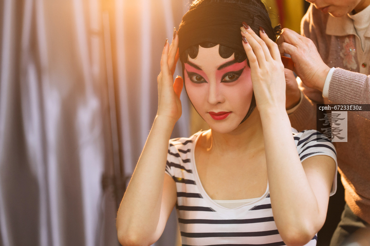 图片标题: 发型师在为京剧演员做发型