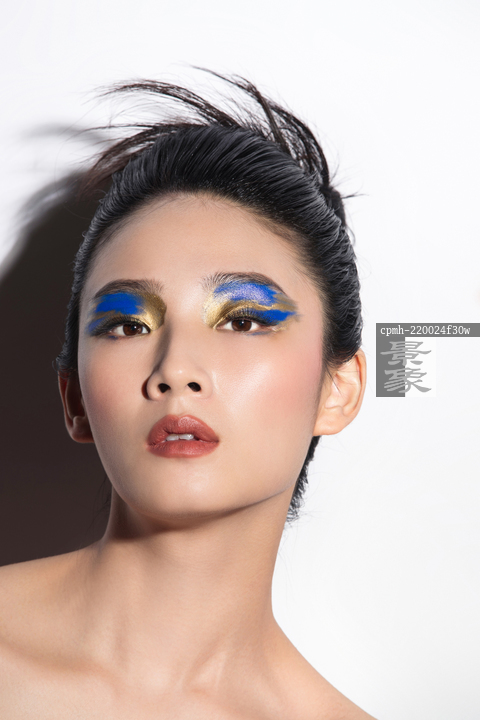 图片标题: 蓝金色系眼影美女肖像