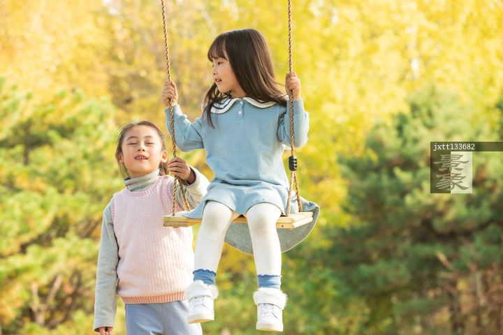 图片标题: 两个快乐女孩荡秋千