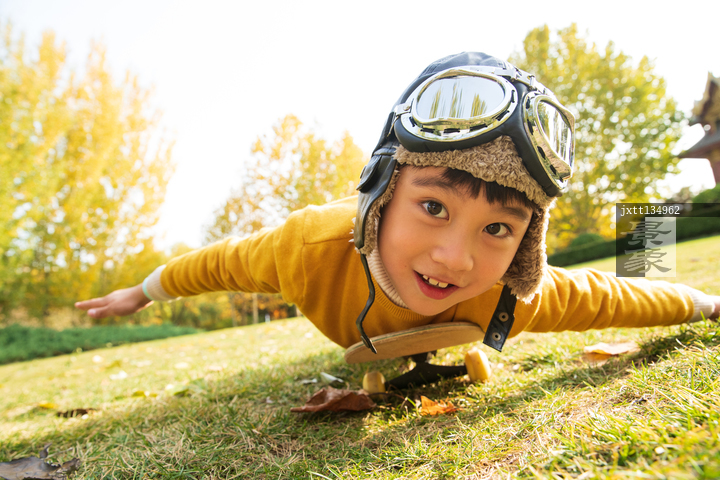 图片标题: 快乐的小男孩玩滑板