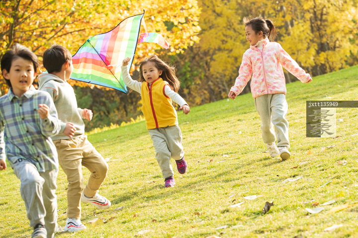 图片标题: 快乐的小朋友在公园里放风筝