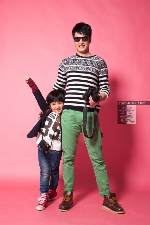 图片标题: 父亲和儿子拿着相机