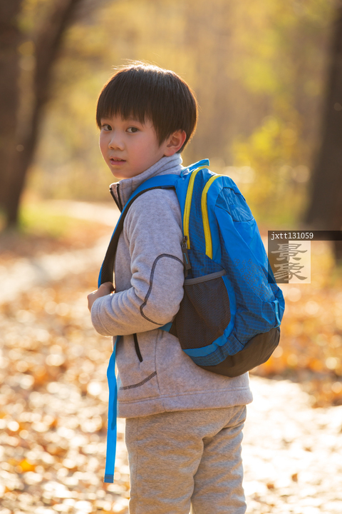 图片标题: 小男孩徒步旅行