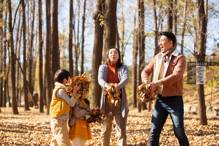 图片标题:     快乐家庭在树林里玩耍