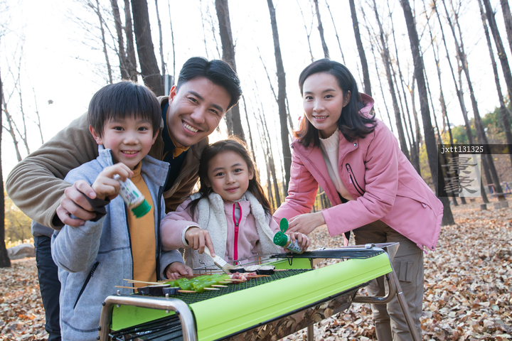 图片标题: 幸福家庭在郊外烧烤