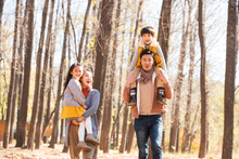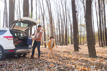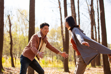 图片标题: 可爱的男孩女孩在树林里玩耍