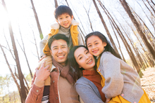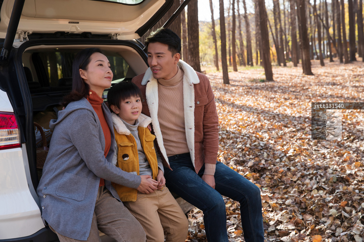图片标题: 一家三口坐在汽车后备箱里
