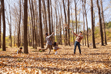 图片标题: 快乐儿童在树林里玩耍