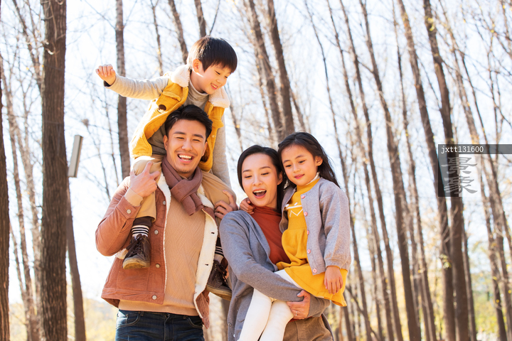 图片标题:     幸福家庭在树林里玩耍
