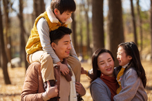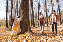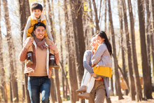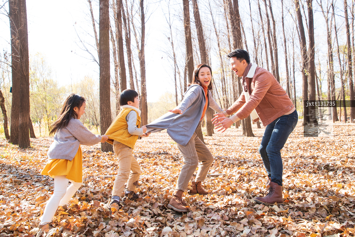 图片标题: 欢乐家庭在户外玩游戏