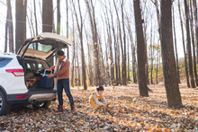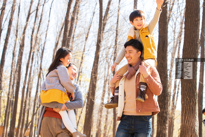 图片标题: 幸福家庭在树林里玩耍