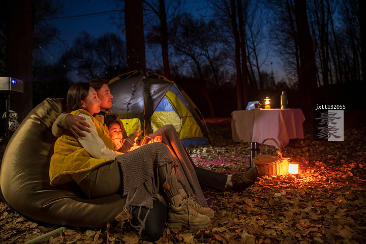 图片标题:     一家三口夜晚在野外露营