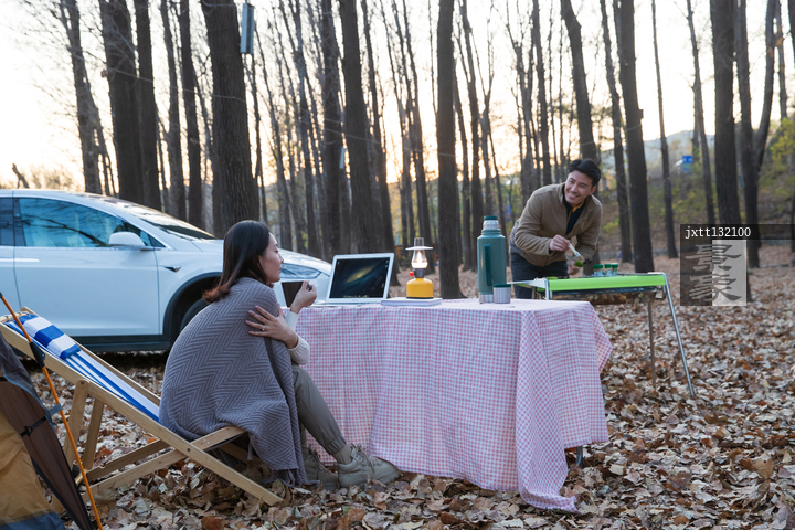 图片标题: 青年夫妇在野外露营