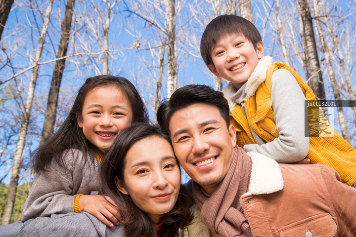 图片标题: 幸福家庭在树林里玩耍
