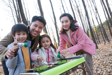 图片标题: 幸福家庭在树林里玩耍