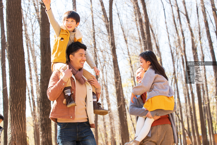 图片标题: 幸福家庭在树林里玩耍