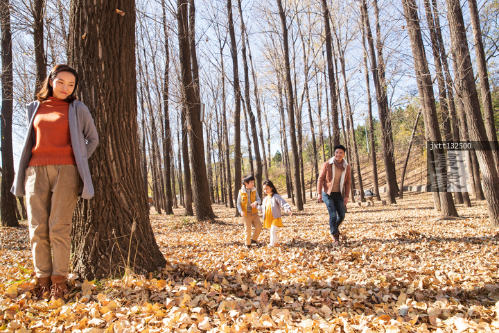 图片标题:     欢乐家庭在户外玩捉迷藏游戏