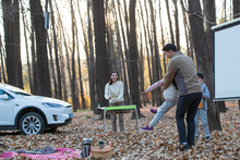 图片标题: 一家三口夜晚在野外露营