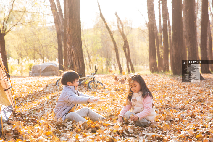 图片标题: 快乐儿童在树林里玩耍