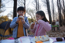 图片标题: 快乐儿童在树林里玩耍