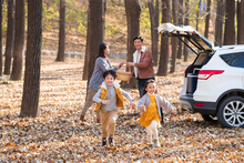 图片标题: 欢乐家庭在户外玩捉迷藏游戏