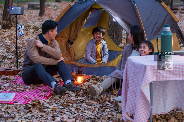 图片标题: 快乐家庭在野外露营