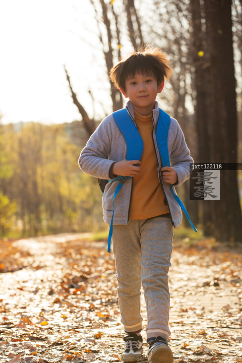 图片标题: 小男孩徒步旅行