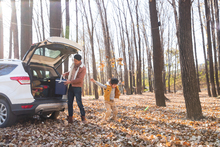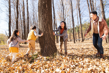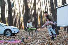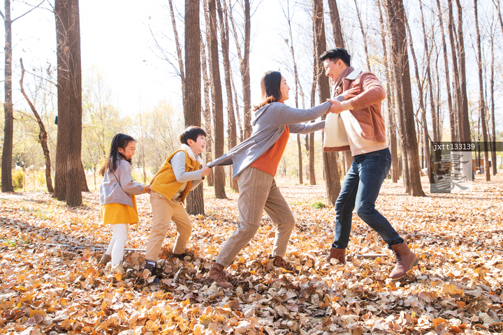 图片标题: 欢乐家庭在户外玩游戏