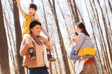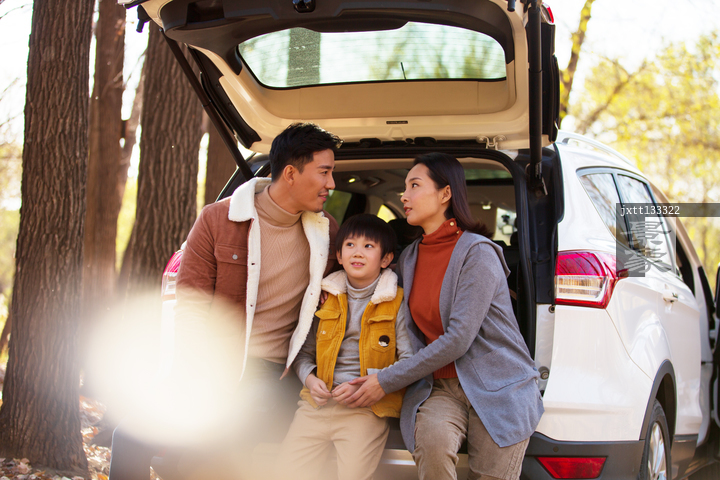 图片标题: 一家三口坐在汽车后备箱里