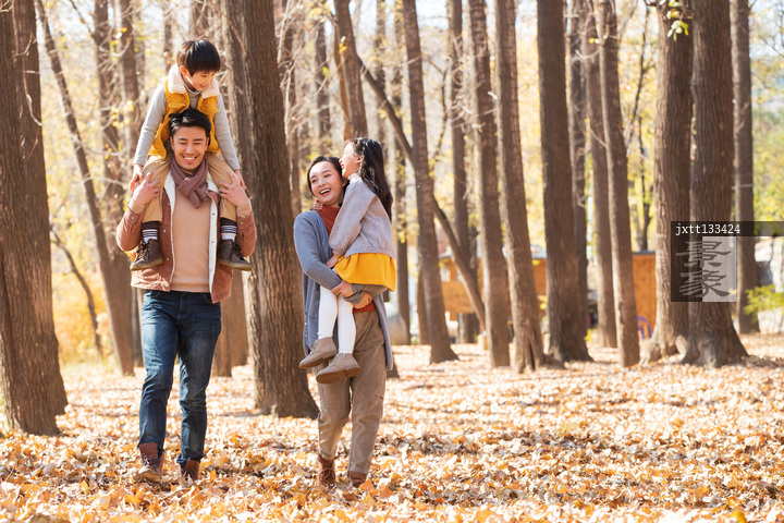 图片标题:     幸福家庭在树林里玩耍