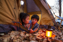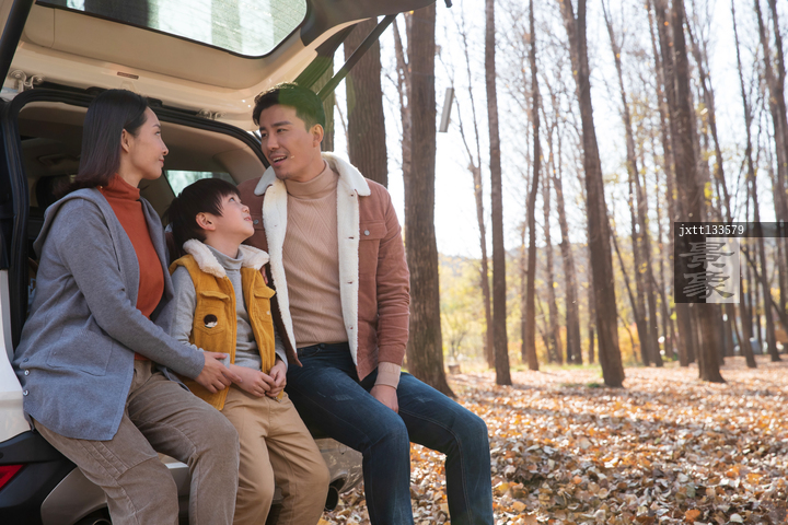 图片标题: 一家三口坐在汽车后备箱里