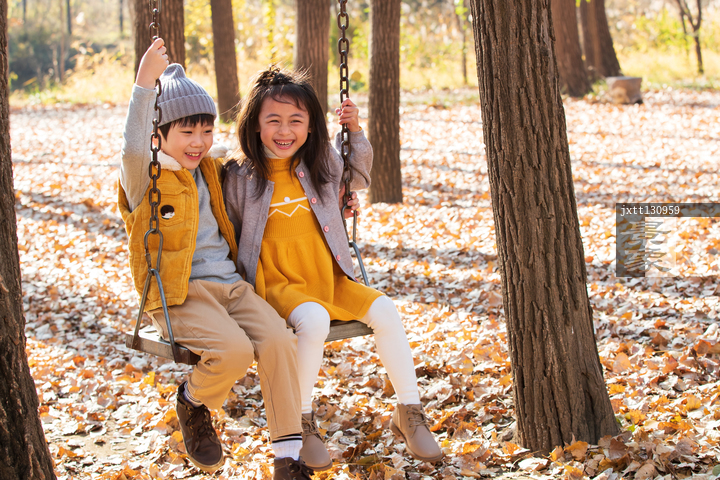 图片标题: 快乐儿童在户外荡秋千
