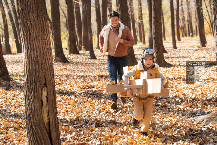 图片标题:     年轻父亲带着孩子玩飞机游戏