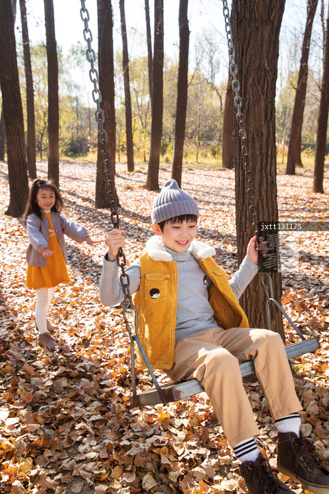 图片标题: 快乐儿童在户外荡秋千