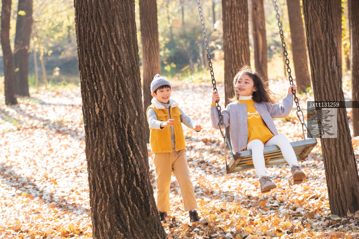 图片标题: 快乐儿童在户外荡秋千