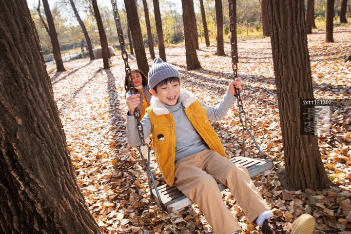 图片标题: 快乐儿童在户外荡秋千