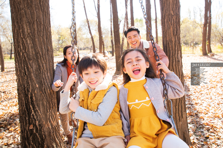 图片标题:     快乐家庭在户外荡秋千