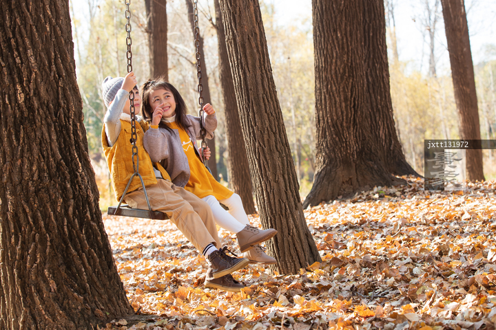 图片标题: 快乐儿童在户外荡秋千