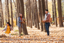图片标题: 快乐儿童坐在秋千上吹泡泡