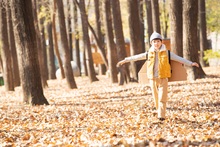 图片标题: 青年父亲带着孩子们在树林里玩耍