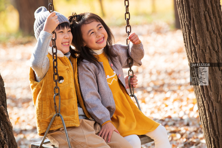 图片标题: 快乐儿童在户外荡秋千