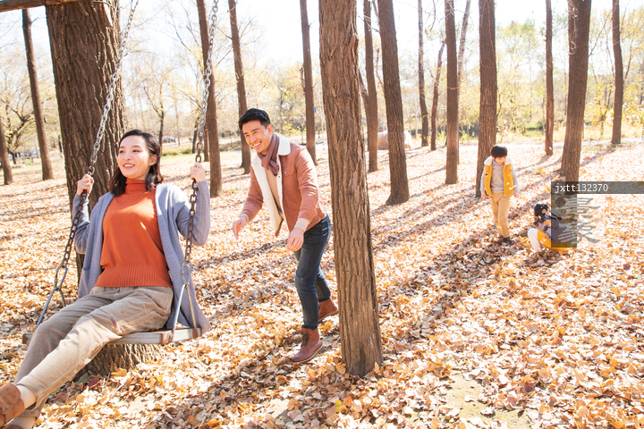 图片标题:     快乐家庭在户外荡秋千