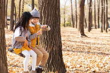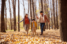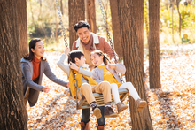 图片标题: 快乐家庭在户外荡秋千