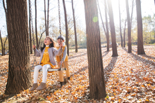 图片标题: 快乐儿童在户外荡秋千