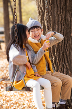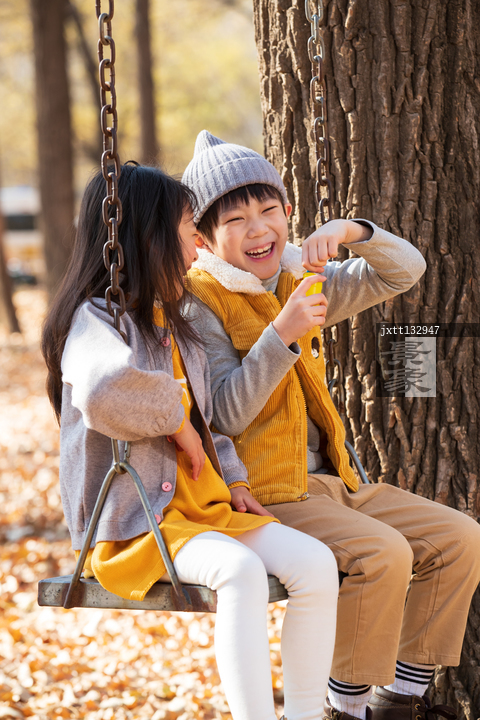 图片标题:     快乐儿童坐在秋千上吹泡泡