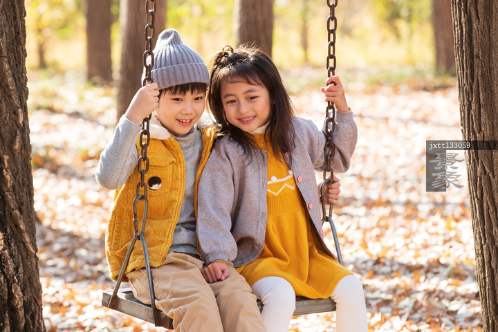 图片标题: 快乐儿童在户外荡秋千