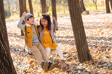 图片标题: 快乐家庭在树林里玩耍