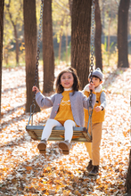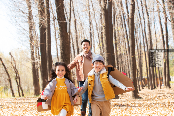 图片标题: 年轻父亲带着孩子们玩飞机游戏