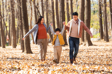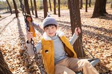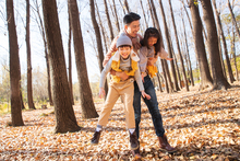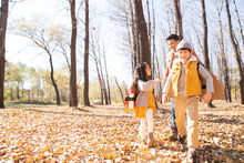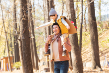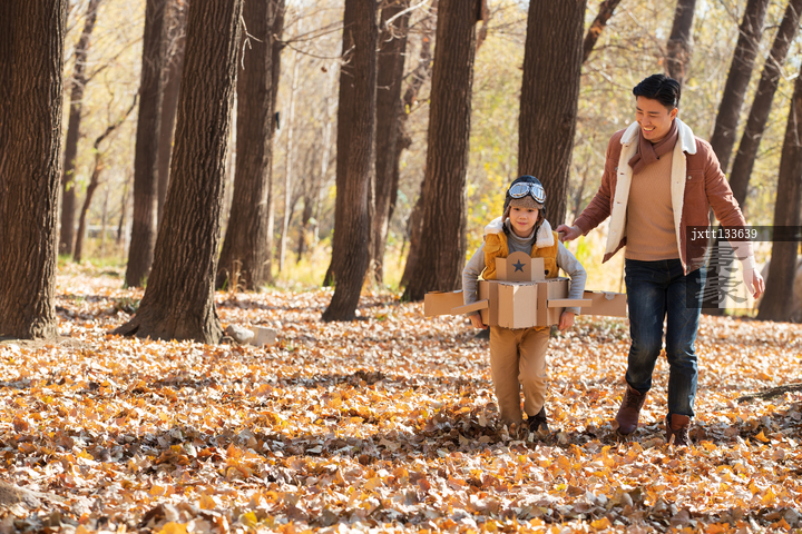 图片标题: 年轻父亲带着孩子玩飞机游戏