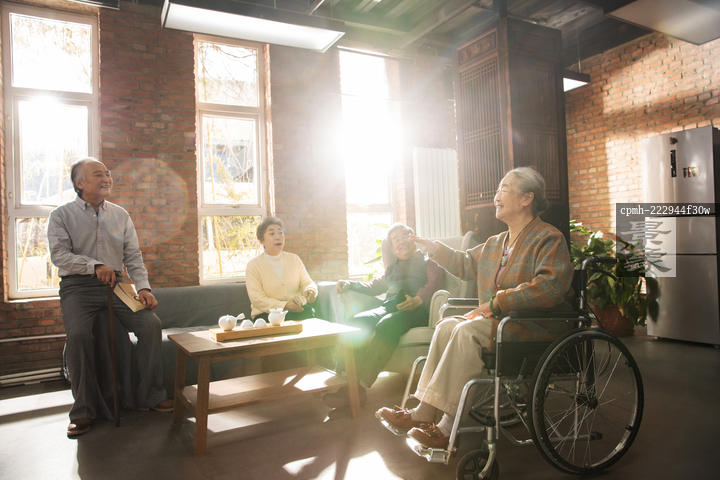 图片标题: 快乐的老年人聚在一起聊天